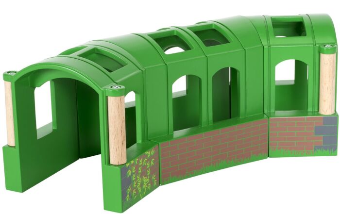 En, to eller tre tunneller? Placer dem separat, eller forbind dem omkring et sving. Hvad sker der, når du kører igennem? Det bestemmer du! Alsidig tunnel i tre dele. Koblet sammen eller placeres separat. Super god som supplering til din BRIO World togbane.